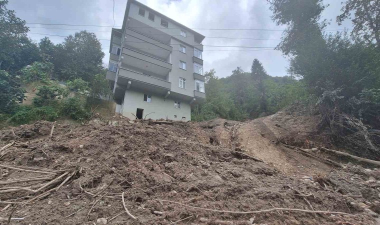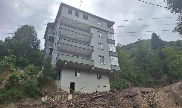 Trabzon’un Arsin ilçesinde şiddetli yağışların ardından meydana gelen heyelanda 5 katlı binadakiler büyük tehlike yaşadı. Zemin katından toprak ve kaya parçaları nedeniyle zarar gören binanın yolu da kapandı.