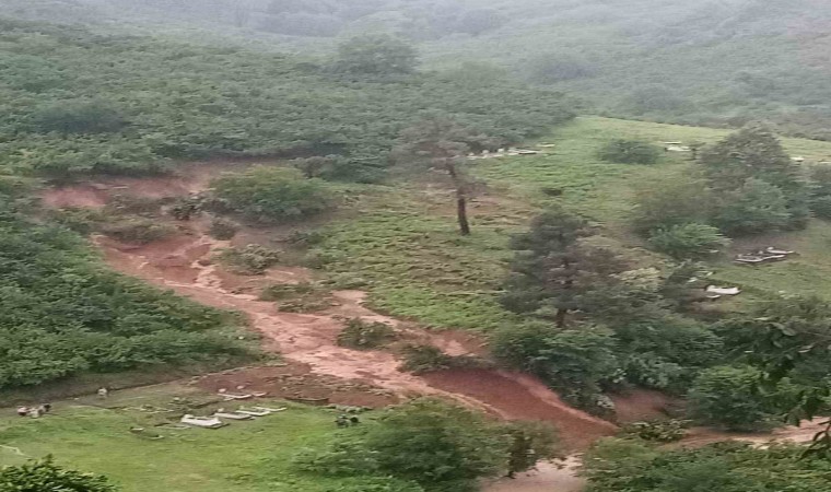 Zonguldak'ın Ereğli ilçesinde meydana gelen yoğun sağanak yağışlar, Bayat köyünde toprak kaymasına yol açtı. Dün gece başlayan ve bugün de devam eden şiddetli yağışlar, Ereğli ve çevresinde su baskınları ve heyelanlara neden oldu. Bayat köyünde ise yağışlar sonucu bazı mezarlar ve bahçelerdeki fındık ağaçları toprak kayması nedeniyle sürüklendi. Bu olay anı, bir vatandaşın cep telefonuyla kaydedildi. Yaşanan bu doğal afet nedeniyle bölgedeki insanlar endişeli bir şekilde durumu izliyor.