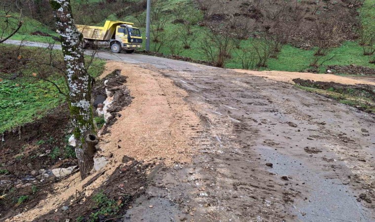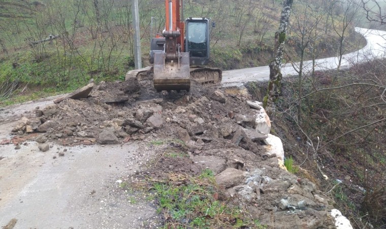 DÜZCE (İHA) – Düzce’de yağışlar sonrasında oluşan heyelana ekipler kısa sürede müdahale ederek yol güvenliğini sağladı.