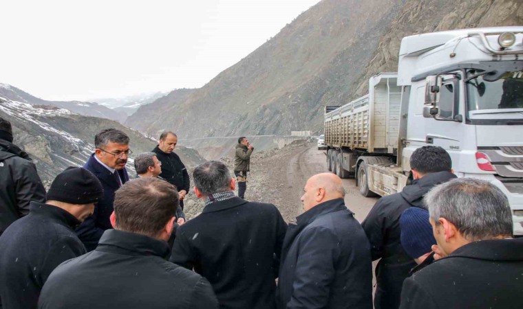 Hakkari-Yüksekova Karayolu Yeni Köprü mevkiinde geçtiğimiz hafta meydana gelen heyelan sonrası temizlenen yola taşların düşmeye devam etmesi sebebi ile Vali ve Belediye Başkan Vekili Ali Çelik, Yüksekova Kaymakamı Ömer Çimşit ile birlikte bölgeye gitti. Karayolları 11. Bölge Müdürü Demirhan Erol ve alanında uzman mühendisler ile bölgede incelemelerde bulunan Vali Çelik, yapılan çalışmalar ile ilgili karayolları yetkililerinden bilgi aldı. “Öncelikli olarak vatandaşımızın can güvenliği, bölgede yaşanan sorunların ortadan kalkması için biran önce çalışmaları hızlandırarak çözüme kavuşturmalıyız” diyen Vali Çelik, çalışmaların hızlandırılması ve en kısa sürede tamamlanması için karayolları ekiplerine talimat verdi.