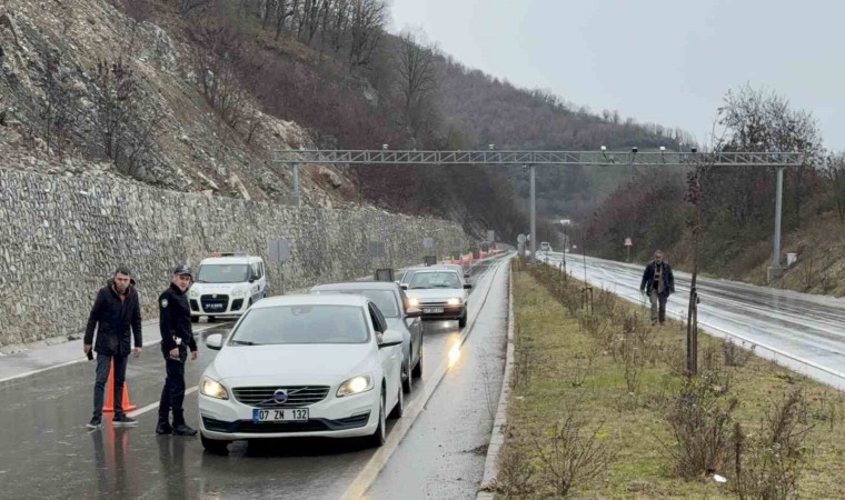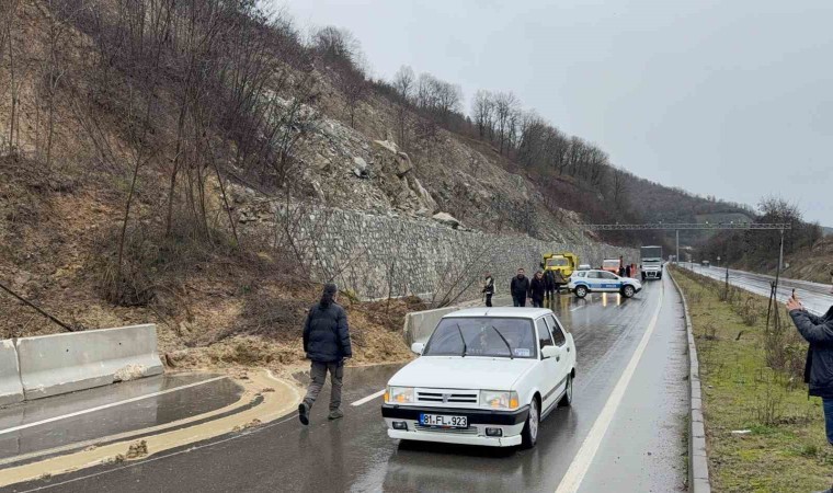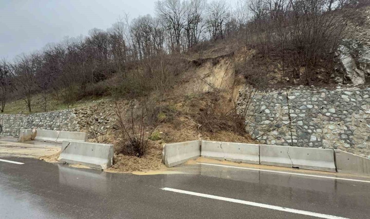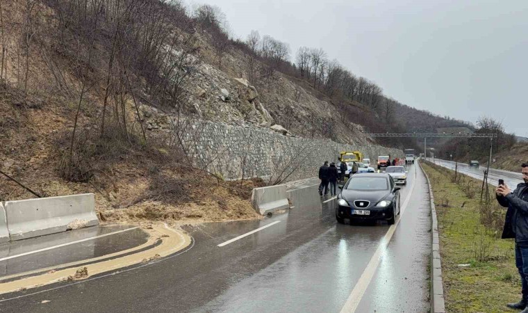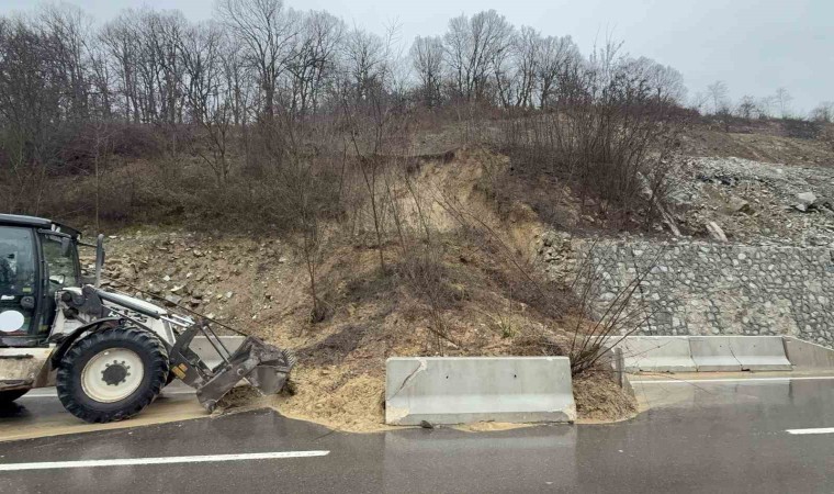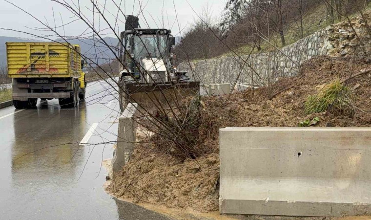 Düzce’de sağanak yağışlar Gölyaka ilçe yolunda heyelana sebebiyet verdi. Yol tek şeritten verilirken, heyelan kaldırma çalışmalarına başlandı.