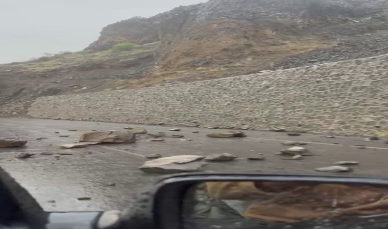 Kars’ın Sarıkamış ilçesinde yola düşen kaya parçaları ulaşımı aksattı.