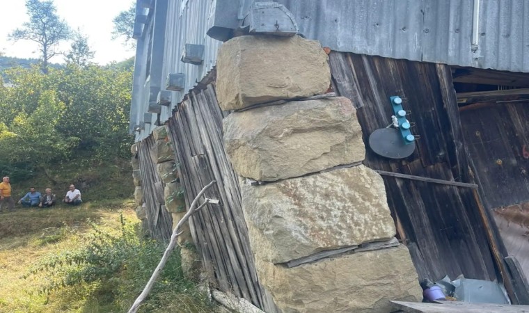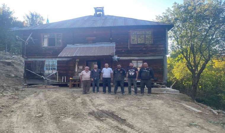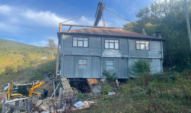Sinop’un Ayancık ilçesine bağlı İnaltı köyünde, heyelan nedeniyle yan yatarak oturulamaz hale gelen iki katlı ahşap baba evini yıkmaya kıyamayan evlatları, evi vinçle farklı alana taşıttı.