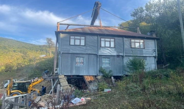 İki katlı ahşaptan oluşan baba yadigarı ev, Sinop’ta bir firmaya ait 80 tonluk vinç ile heyelan bölgesinden yaklaşık 10 metre uzaktaki farklı bir alana taşınarak yerleştirildi.