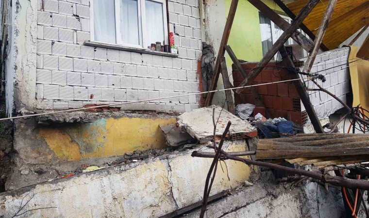 Karabük’te heyelan nedeniyle balkonu çöken iki katlı müstakil ev boşaltılırken 6 kişilik aile geçici olarak öğretmenevine yerleştirildi.
