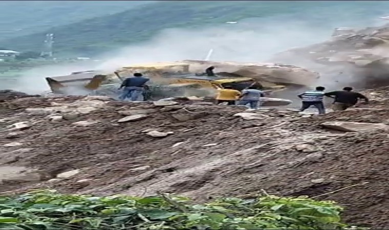 Hindistan’ı Himaçal Pradeş eyaletinde etkili olan şiddetli yağışlar toprak kaymasına neden oldu. Toprak kaymasının yaşandığı sırada dağ yolunda çalışmalar yürüten işçiler facianın eşiğinden döndü. İşçilerin çalışması sırasında kopan bir kaya parçası, kepçenin üzerine düştü. O sırada kepçe içinde bulunan, operatör kendini dışarı attı. Kaya parçasının üzerine düşmesinden son anda kurtaran kepçe operatörü hastaneye kaldırıldı.