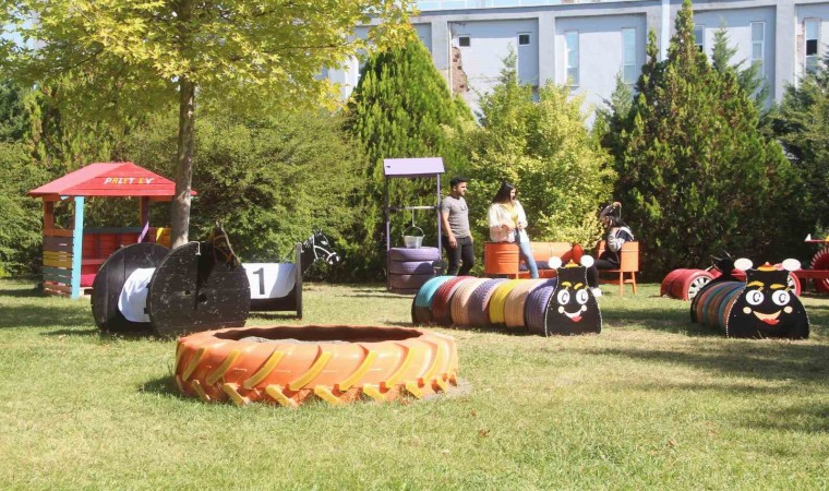 Elazığ Hipodromu’nda çocuklar için yapılan ’Geri Dönüşüm Parkı’ hizmete açıldı. Otomobil lastiğinden oturak, varillerden koltuk ve çöp kovaları yapılan park, büyük ilgi gördü.