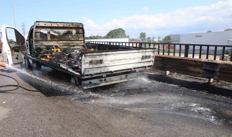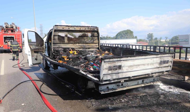 Samsun’da seyir halinde olan kamyonetin kasasında bulunan hırdavat malzemeleri bir anda yanmaya başladı. Alevlerin büyümesi sonucunda kamyonet yanarak kullanılmaz hale geldi.