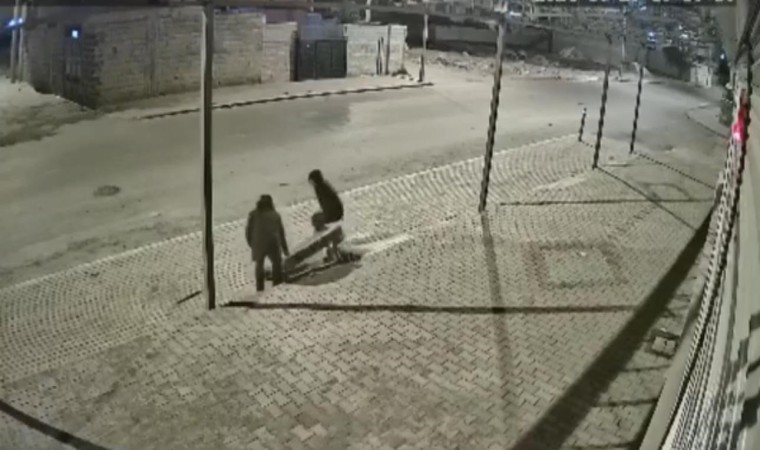 Şanlıurfa’nın Siverek ilçesinde bir iş yerinin önünde bulunan paleti çalmaya gelen 2 genç, dikkat çekmemek için halay çekti.