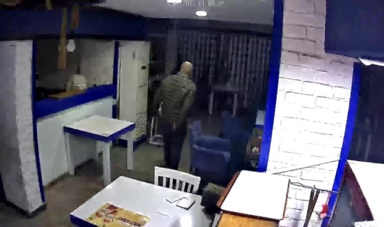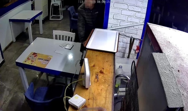 O anlar işyerinin güvenlik kamerasına da yansıdı. Görüntülerde şahsın işyeri içerisinde dolaşması, etrafı gözetleyip kasa ile TİP kutusunu karıştırdığı anlar ve daha sonrasında sesleri fark ederek aşağı inen işyeri çalışanıyla göz göze geldiği anlar yer aldı. Görüntülerinde devamına da şahsın işyerinden ayrılması ve çalışanın peşinden gitmesi yansıdı.