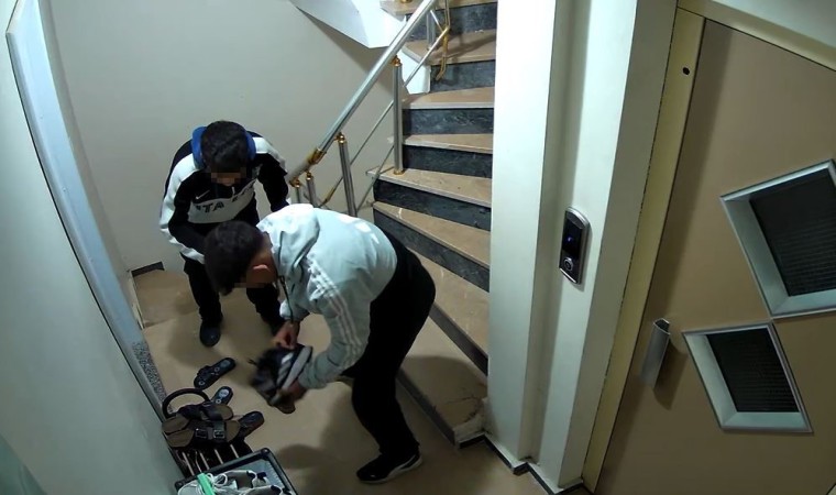 İstanbul Arnavutköy’de ayakkabı çalmak için bir apartmana giren 2 hırsız, apartman dairelerini dolaştığı esnada denk geldikleri pahalı bir ayakkabıyı görünce birbirlerine “çak” yaparak sevindi. Hırsızların sevinci apartmanın güvenlik kamerası tarafından görüntülendi.