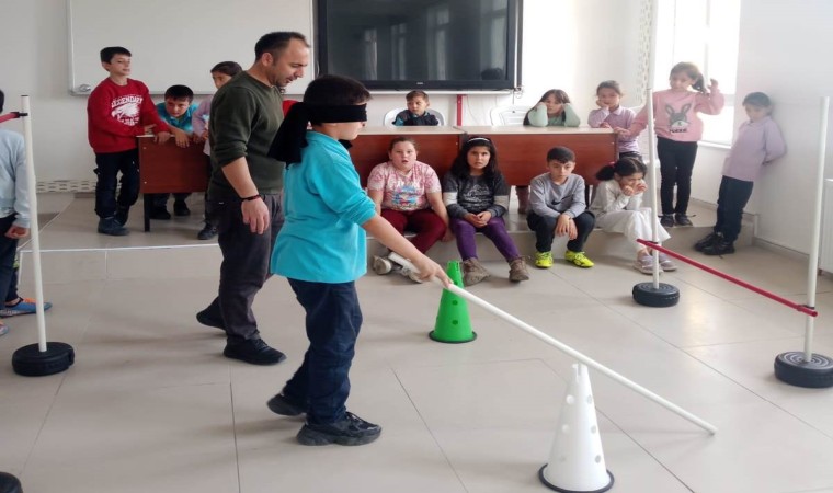 Atatürk İlkokulu salonunda oluşturulan Empati Parkurunda öğrenci ve öğretmenlerin gözlerini bağlanarak empati parkurunu tamamlamaları istendi. Parkurda sandalyeye oturma, kovaya top atma, kalemi alarak söylenen harfi yazma gibi seçenekler mevcuttu. Öğrenci ve öğretmenler parkurda yerine getirmeleri gereken görevleri seçerek parkuru tamamladılar.
