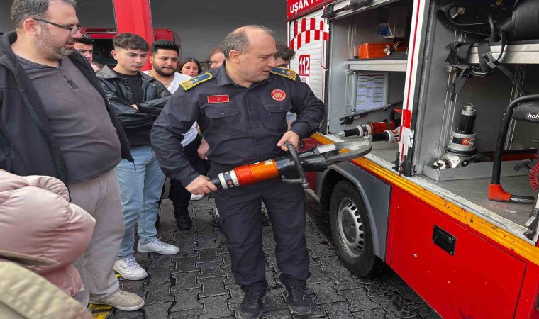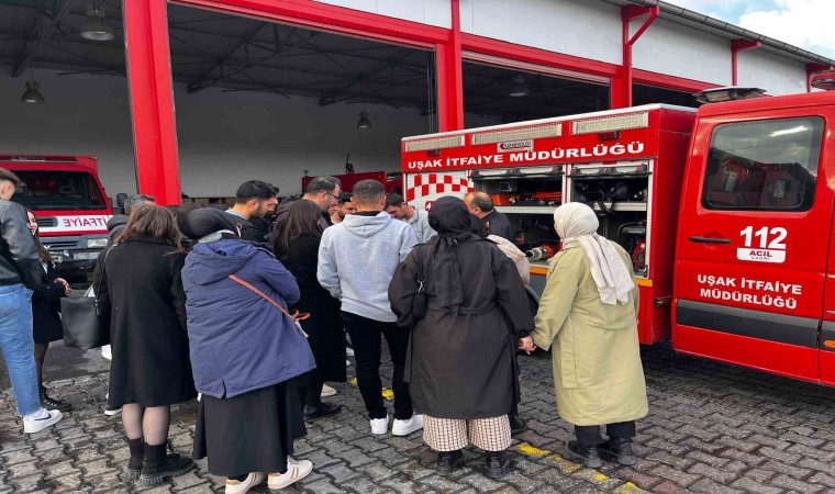 Öğretim Görevlileri Ahmet Danış ve Arif Emre Şen nezaretinde yapılan gezide, İş Sağlığı ve Güvenliği programından 20 öğrenci Uşak Belediyesi İtfaiye Müdürlüğünü ziyaret etti. Ziyarette İtfaiye Müdürü Mehmet Çağlar öğrencilere, yangın eğitimi amacı önemi mevzuatı ve uygulamaları, yangın sebepleri ve yangınla mücadele yöntemleri, yangın tehlikeleri, riskleri, yangın önleyici tedbirler ve riskleri, yangın ihbar usulleri, yangın anında hareket tarzı, yangının çevresel etkileri, yangın acil durum planı, acil durum ekiplerinin görevi, alınması gereken önlemler, yangın algılama ve yangın söndürme, yangında ilkyardım ve çevre güvenliği alma, işyerlerinde tüm çalışanlar için acil durum planları ile arama, kurtarma ve tahliye, yangınla mücadele ve ilk yardım konularında bilgiler verdi, öğrencilerin sorularını yanıtladı.