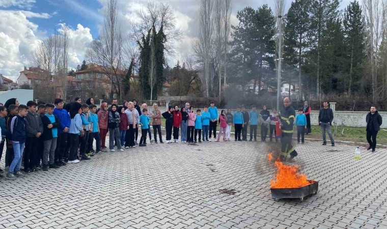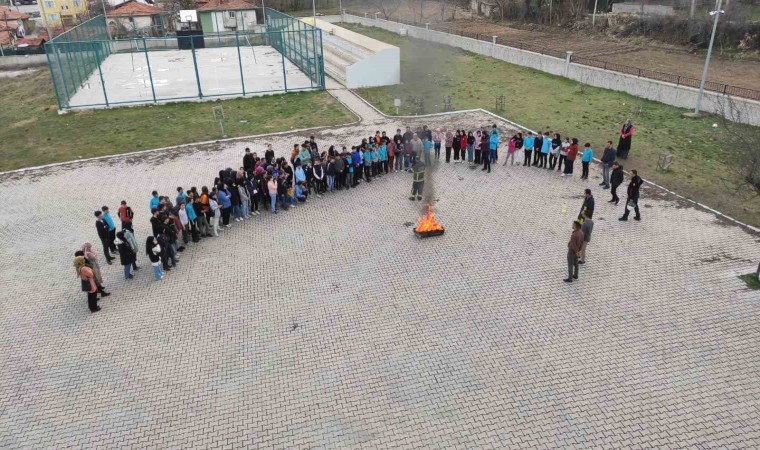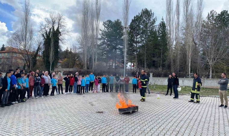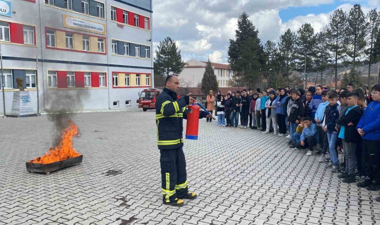 Daha sonra okulun toplanma alanında öğrencilere Hisarcık Belediyesi itfaiye ekiplerince yangın tatbikatı ve yangın tüpünün kullanımı konusunda bilgilendirme yapıldı.