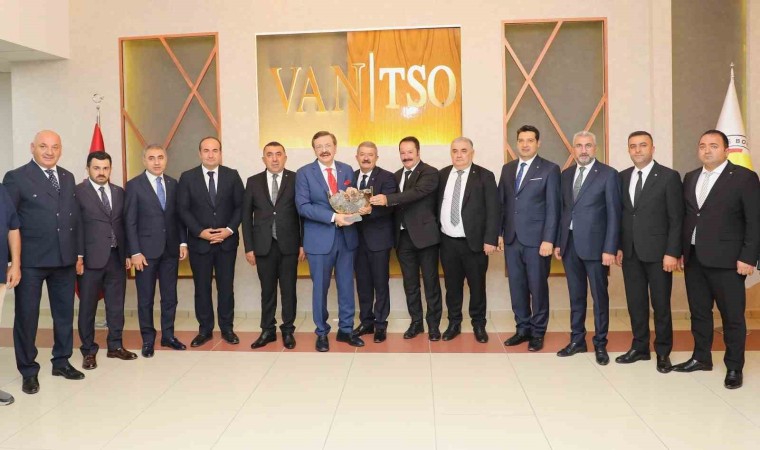 Başkan Hisarcıklıoğlu’nun bir sonraki durağı da Van TSO oldu. Van TSO Yönetim Kurulu ve meclis üyeleri tarafından karşılanan Hisarcıklıoğlu’na Vanspor forması hediye edildi. Hisarcıklıoğlu, Van TSO’da “İstihdamın Yıldızları Ödül Töreni”ne katıldı. Törende konuşan Hisarcıklıoğlu, bölgenin gelişimi ve marka değerinin arttırılması adına yürütülen çalışmalar hakkında önemli açıklamalarda bulundu. Hisarcıklıoğlu, Van’ın turizm potansiyelini canlandırmak ve ticaretin hareketlenmesine yönelik projelerin sürdüğünü belirterek, “Daha önce 52 bin kişilik Van kahvaltısıyla dünya rekoru kırmıştık. Şimdi de ikinci kez düzenlenen fuarla Van’ın eşsiz yeme içme kültürünü tanıtıyoruz" diye konuştu.