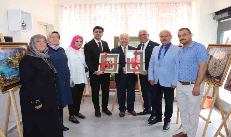 Giyim, nakış ve kağıt rölyef ürünlerin sergilendiği sergide ayrıca Halk Eğitimi Merkezine ismi verilen Şehit Ahmet Yavuz adına katılımcılara helva ikramı yapıldı.