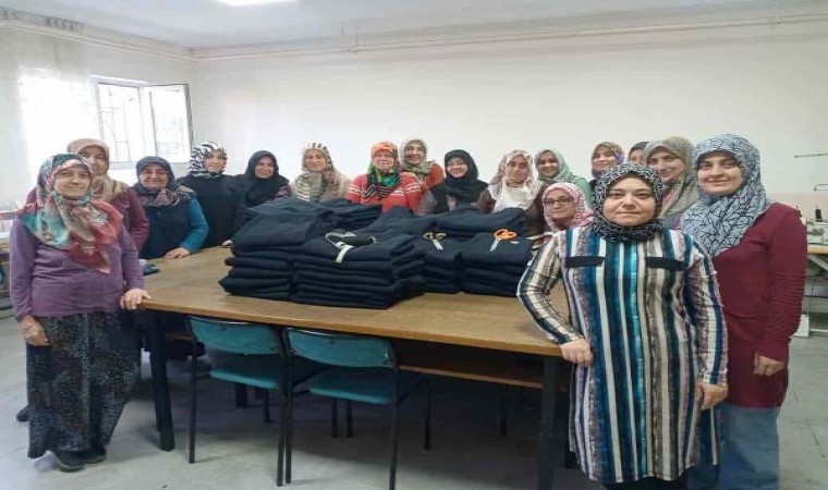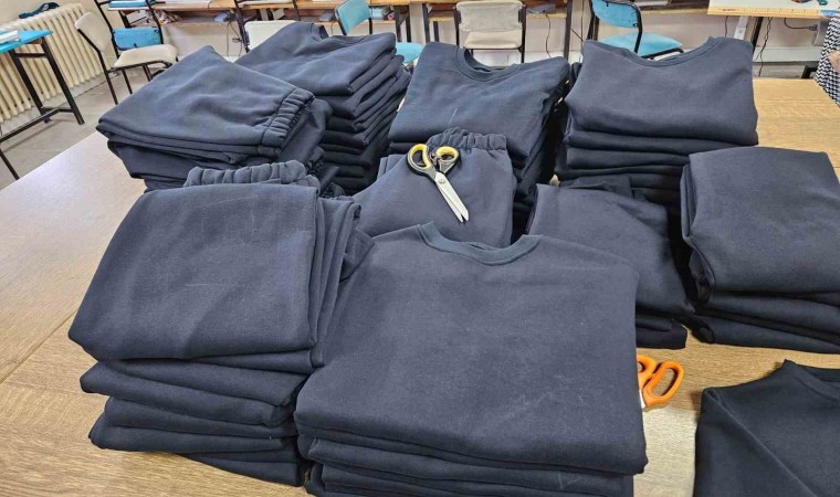 Kütahya’nın Hisarcık ilçesinde kadın kursiyerler, Milli Eğitim Bakanlığı Hayat Boyu Öğrenme Genel Müdürlüğünce hazırlanan proje çerçevesinde İsrail’in saldırıları altındaki Gazze’de bulunan çocuk, genç ve yetişkinler için eşofman takımı üretiyor.