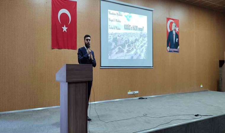 Kütahya’nın Hisarcık ilçesinde Müftülük tarafından “Mahzun Kalplerin Esir Şehri Kudüs” başlıklı konferans düzenlendi.