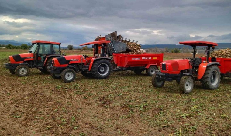 Kütahya’nın Hisarcık ilçesinde çiftçilerin şeker pancarı söküm mesaisi devam ediyor.