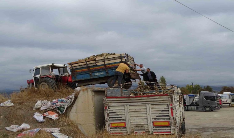 Hisarcık ilçesinde üreticiler pancar hasadına başladı. Üreticiler tarlalarından hasat ettikleri şeker pancarları önce traktörlere, daha sonra tırlara yüklenerek Kütahya Şeker Fabrikası’na teslim ediyor. Bu yılki üretimle ilgili bilgi veren Hisarcık Pancar Ekicileri Grup Başkanı Mehmet Özkan, pancarda kota uygulamasının ardından çok az üreticinin pancar ektiği ilçede son 2 yıldan beri çiftçilerin pancar ekimine yöneldiğini söyledi. Özkan, ”Bu sene pancar ekimi sonrası yağmur yağmadığı için pancar filizlenmeyince sulamak zorunda kaldık. Bu sayede pancarlar filizlendi. Bu sene verim çok iyi. Çiftçilerimiz makineleşti. Ekim, ara çapa ve söküm makinelerimiz var. Bu nedenle işçi masrafımız olmuyor. Pancarın getirisi de iyi. Pancar eken çiftçi sayısının önümüzdeki yıllarda daha da artmasını bekliyoruz. Pancar üreticilerimize kazasız belasız bir sezon diliyorum” dedi.
