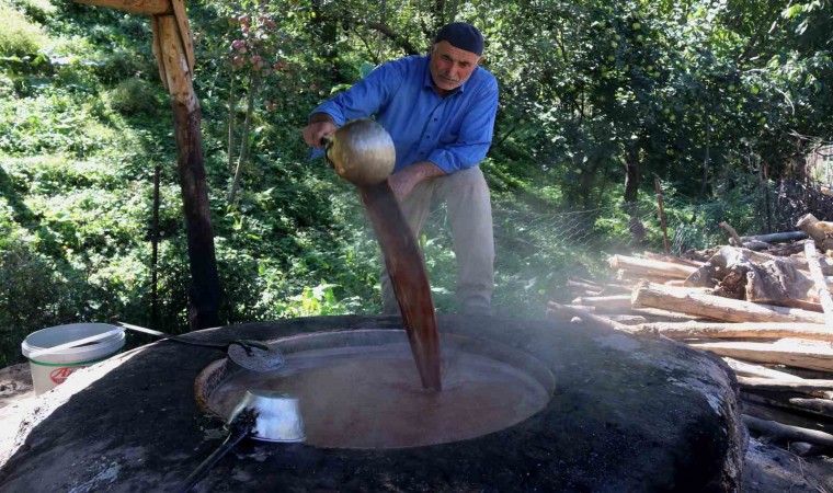Dededen kalma yöntemlere halen pekmez yaptıklarını belirten Erkan Özer, 100 kilo üzüm suyundan 35-40 kilo pekmez elde ettiklerini söyledi. Özer, “Yüzyıllardır bizim yaptığımız üzüm pekmezi dedelerimizden babalarımızdan bize kaldı. Önce bağdan üzümlerimizi topluyoruz. Daha sonra sıkma kazanlarımıza koyuyoruz. Doğal yöntemlerle üzümlerimizi güzel bir şekilde sıkıp ondan sonra suyunu toprak mayası ile mayalandırıp bidonlara koyuyoruz. Şeffaf bir şekle gelene kadar bidonlarda dinlendiriyoruz. Daha sonra kaynama kazanlarına bırakıyoruz. 100 litre üzüm suyundan yaklaşık 35-40 litre üzüm pekmezi çıkarıyoruz. 280 derecede üzüm suyunu kaynatıp bütün toksinlerini üzerinden alıyoruz. Hazır hale gelen pekmezimizi çevre illere ve dostlarımıza satıyoruz” diye konuştu.