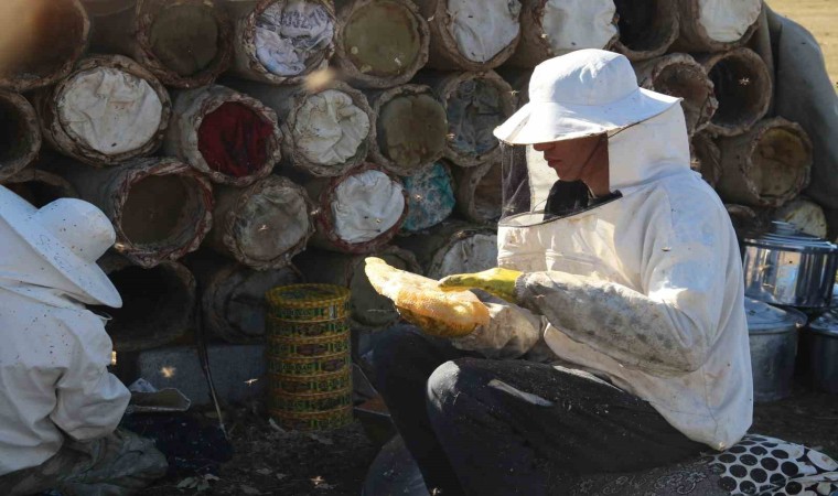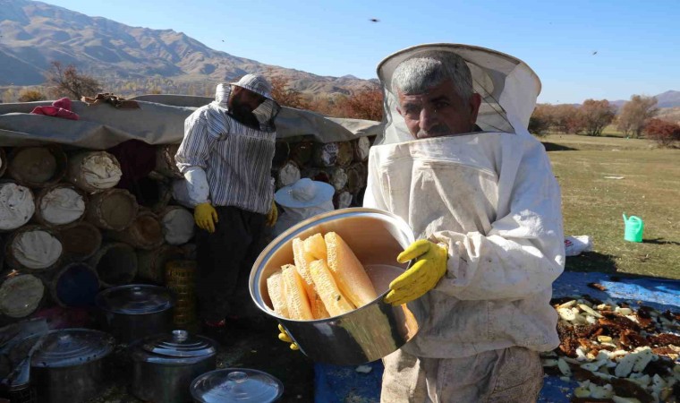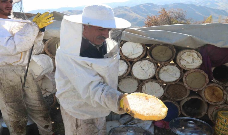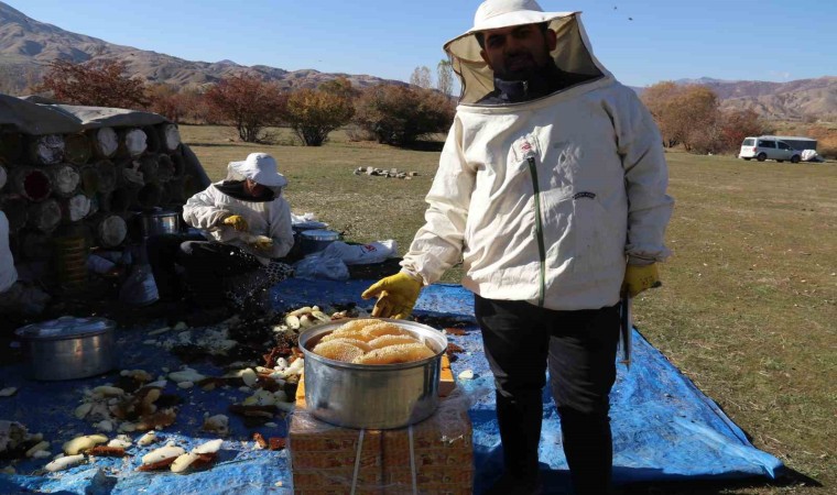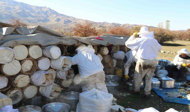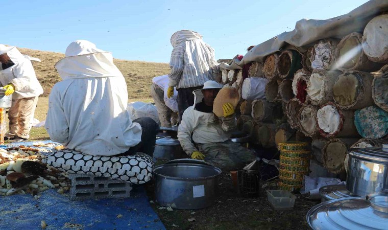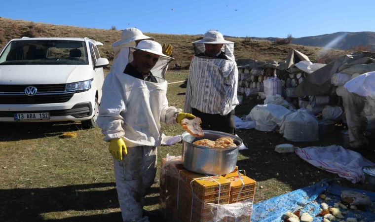 Bitlis’in Hizan ilçesinde ilkbahar mevsiminde yüksek bölgelere bırakılan kovanlarda katkı maddesi kullanılmadan üretilen karakovan balının hasadı devam ediyor.