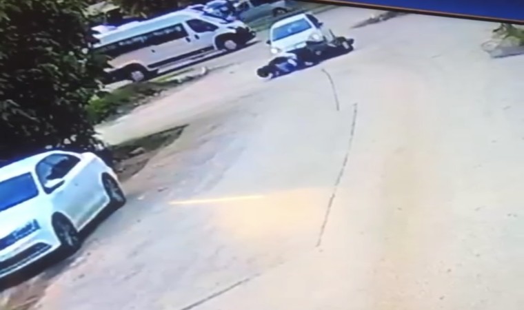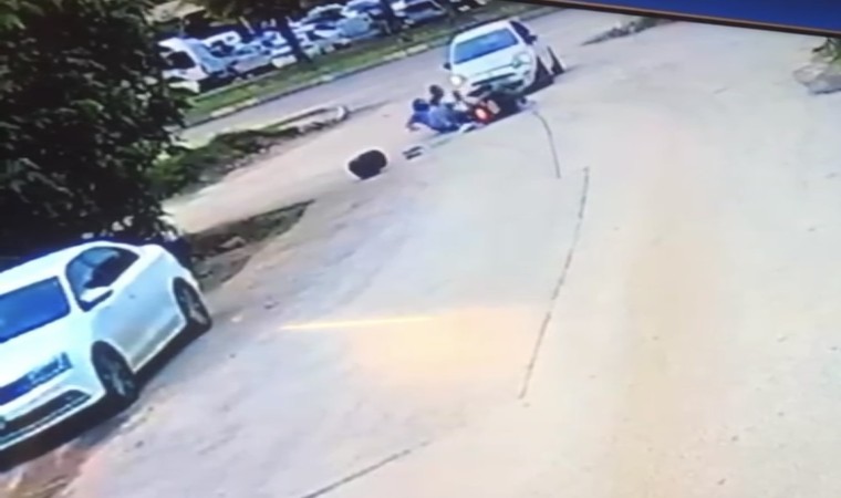 Bursa’nın Nilüfer ilçesi Dumlupınar Mahallesi’nde motosikletle seyir halinde olan sürücü, anayoldan dönüş yapan otomobile çarptı. Kazanın etkisiyle motosiklette bulunan 2 genç yola savruldu. Araç sürücüsü gençlerin yardımına koşarken, çevredekiler 112 ekiplerine ulaştı. İhbar üzerine olay yerine sağlık ekibi sevk edildi. Sağlık ekiplerince kontrolleri yapılan gençlerin kazayı hafif sıyrıklarla atlattığı öğrenilirken, yürekleri ağza getiren görüntü kameraya anbean yansıdı.