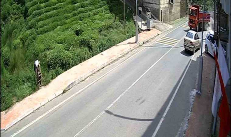 Olay, Rize’nin Çayeli ilçesi Büyükköy Beldesi’ne bağlı Merkez Mahallesi’nde meydana geldi. Edinilen bilgiye göre, yokuş aşağı seyir halinde olan kamyon, hızla viraja girdi. O esnada karşısından gelen bir araca çarpmak üzereyken yaptığı manevra ile kurtulurken arkadan gelen diğer bir çift kabin araçtan da son anda kurtuldu. Meydana gelen olay çevrede bulunan güvenlik kamerasına anbean yansıdı.