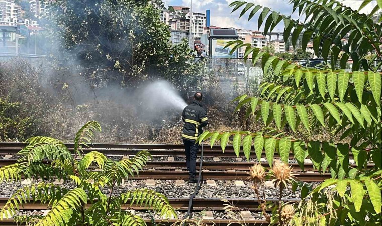 Kocaeli’nin İzmit ilçesinde hızlı tren raylarındaki otluk alanda çıkan yangını itfaiye ekipleri tehlikeye rağmen söndürdü.
