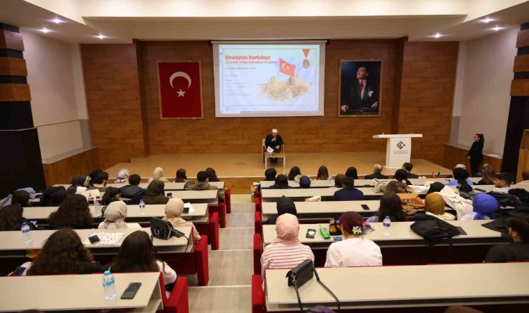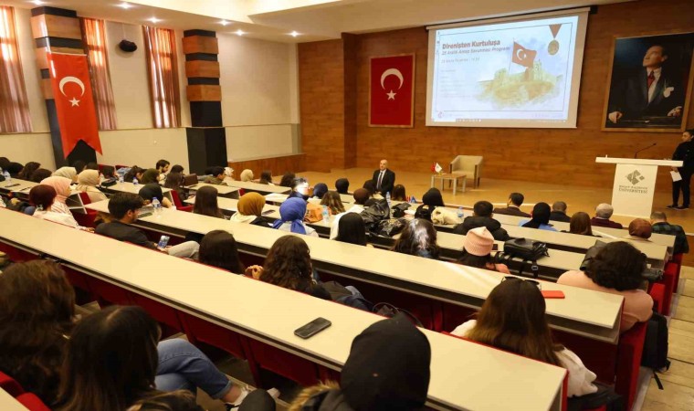 Rektör Yardımcısı Prof. Dr. Mehmet Lütfi Yola, Eğitim Fakültesi Dekanı Prof. Dr. Şener Büyüköztürk, Gaziantep İl Müftü Yardımcısı Dr. Ramazan Yıldırım, akademisyenler ve öğrencilerin katıldığı programda, Dr. Öğretim Görevlisi Murat Erkoç tarafından “Direnişten Kurtuluşa Antep Savunması” konulu konferans verildi.