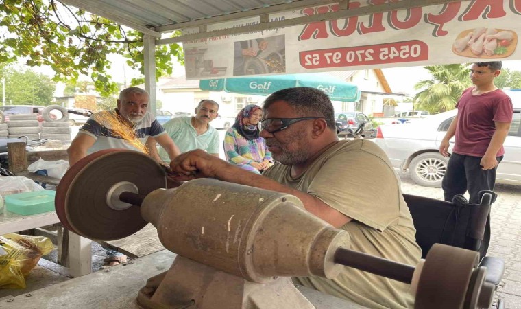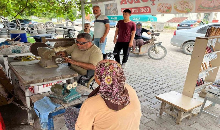 Osmaniye’de hobi olarak başladığı bıçak bileme işine 25 yıldır devam eden fiziksel engelli Hüseyin Köksal(55), ekmek fiyatına bıçak biliyor.