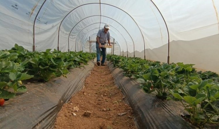 Bilecik’te İsmail Özer isimli vatandaş, hobi olarak başladığı çilek yetiştiriciliğinde yılda 6 ton çilek üretiyor.
