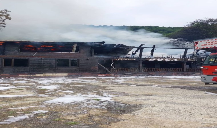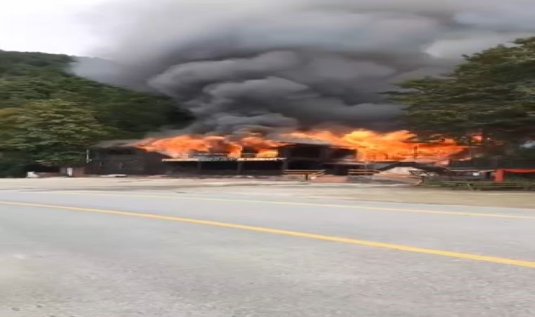 Artvin’in Hopa ilçesinde bir restoranda çıkan yangın korku ve paniğe neden oldu. Alevlerin tamamen sardığı restoranın yanma anı, vatandaşlar tarafından kayıt altına alındı.