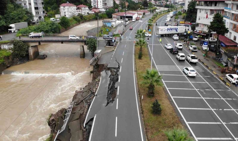 Artvin’de dün öğle saatlerinde başlayarak etkisini süren şiddetli yağışlar hayatı olumsuz etkiledi. Hopa ilçesinde Sanayi Sitesi Yanmış Köprü mevkiinde debisi yüksek dere Borçka-Hopa karayolunda asfaltın altını boşaltarak çökmesine neden oldu. Trafiğe kapanan yolda polis ekipleri tarafından güvenlik önlemi alınarak çöken Hopa’dan Borçka istikametine giden yol trafiğe kapatıldı. Trafik aksamaması için derenin karşısındaki alternatif yoldan kontrollü olarak verildi.
