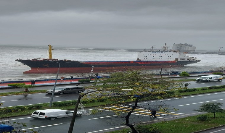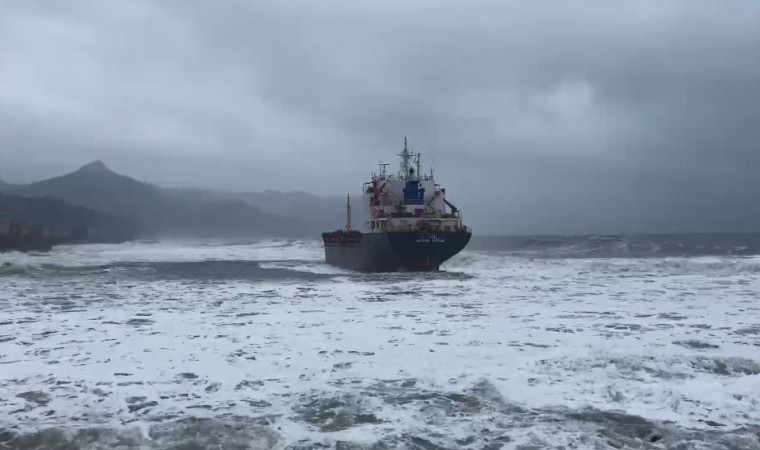 Artvin’in Hopa ilçesinde fırtına nedeniyle bir kuru yük gemisi dalgalara dayanamayarak önce kıyıya sürüklendi, ardından karaya oturdu.