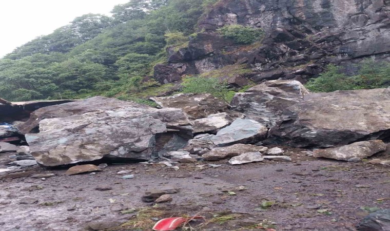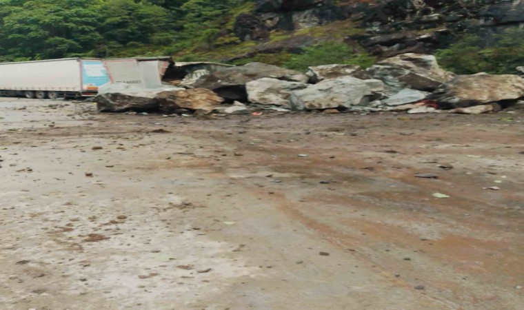Edinilen bilgiye göre, olay sabah saatlerinde ilçeye bağlı Esenkıyı mevkiinde bulunan tır parkında meydana geldi. Yamaçtan kopan dev kaya kütleleri park halinde olan 3 tıra isabet etti. Şans eseri tırın içinde kimsenin bulunmuyor olması büyük bir faciayı önlemiş oldu. Olay yerine gelen ekipler çalışmalarına başlarken, geçtiğimiz yıllarda yine aynı bölgede heyelanlar yaşanmış, park halindeki tırların üzerine dev kayalar isabet etmişti.