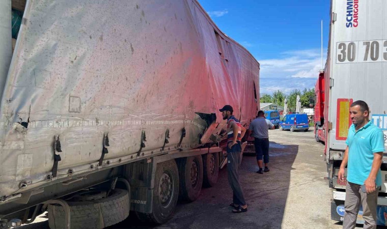 Artvin’in Hopa ilçesinde tır parkında meydana gelen heyelanda bugün 3 tır zarar gördü. Tır sürücüleri Sarp Sınır Kapısını geçmek için tır parklarındaki korkulu bekleyişleri sürüyor.