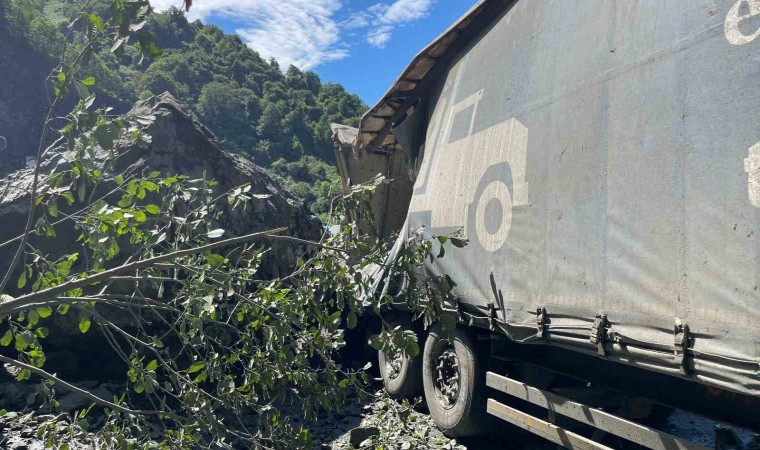 Artvin’de dün etkili olan şiddetli yağış sonrası, Hopa-Kemalpaşa ilçeleri arasındaki Karadeniz Sahil Yolu Esenkıyı köyü mevkiinde bulunan tır parkında sabah saatlerinde heyelan meydana geldi. Sarp Sınır Kapısı’ndan yurt dışına çıkış için tır parkında bekleyen uluslararası taşımacılık yapan tırların bulunduğu alana, yamaçtan kopan taş ve toprak kütleleri düştü. Heyelanda can kaybı ve yaralanan olmazken 3 tır zarar gördü.