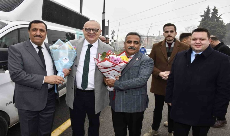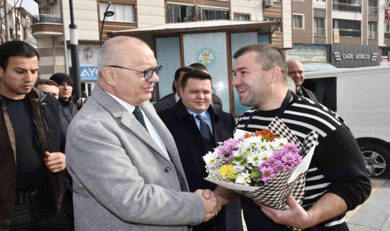Başkan Ergün’e teşekkür edip, çiçek takdim ettiler