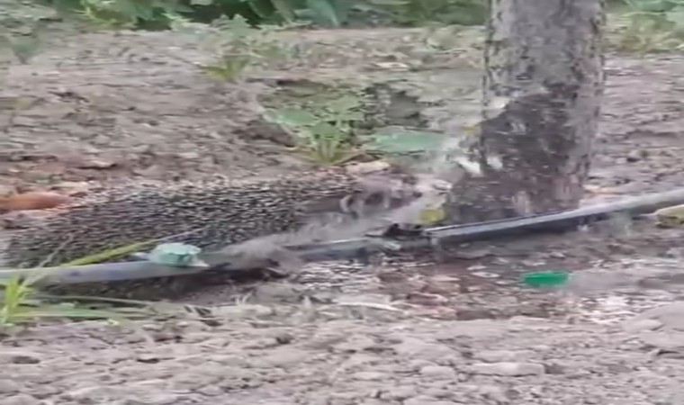 Elazığ’da bir bahçede bulunan kirpi su ihtiyacını gidermek için bahçenin sulama hortumundan çıkan suyu içmeye başladı. O anları bahçe sahibi ise cep telefonu ile kaydetti. Sevimli halleri ile gülümseten kirpi, su içtikten sonra gözden kayboldu.