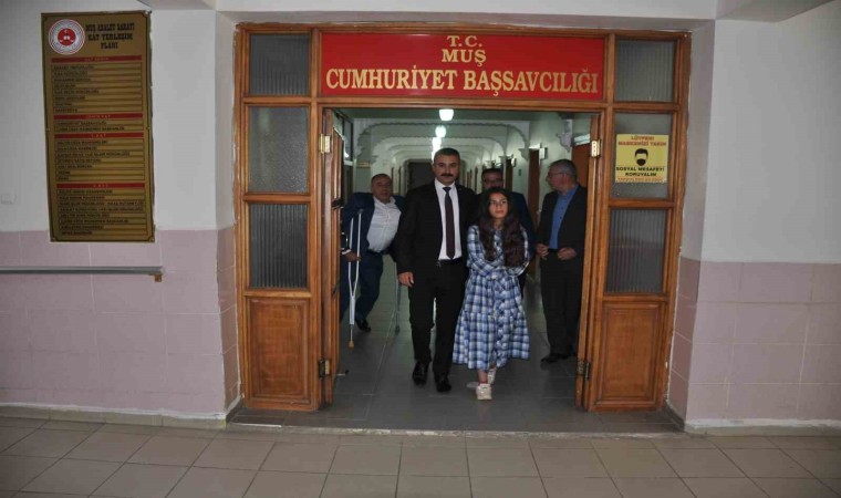 Muş’ta doğuştan elleri olmayan ve hukukçu olmak isteyen 13 yaşındaki Rabia Şancı, Muş Adalet Sarayı’nı ziyaret ederek unutulmaz bir deneyim yaşadı.
