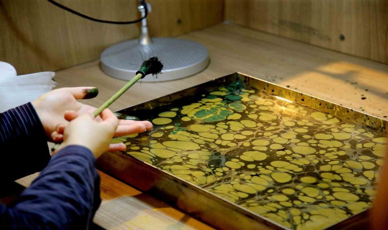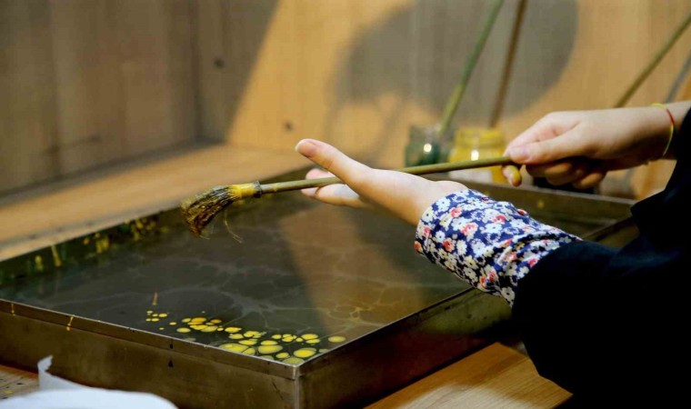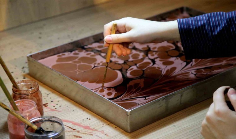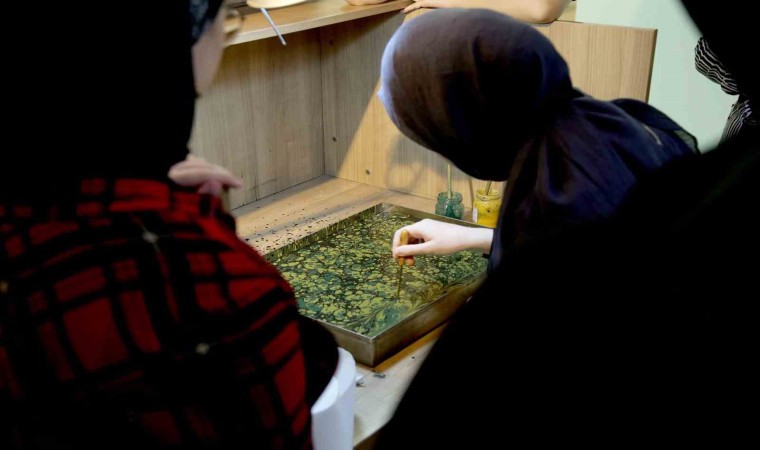 Hünerli ellerin, yeteneklerinin ön plana çıktığı Geleneksel Sanatlar atölyesinde ilk iki hafta çini sanatı işlenirken bu hafta ebru sanatının incelikleri işlendi. Türk Ebru sanatı tarihçesi ve uygulama tekniklerini, Türk Ebru sanatında kullanılan boyalar, malzemeler ve ebru çeşitleri hakkında uzman eğitmenlerden bilgiler alan gençler hünerlerini ve yeteneklerini göstererek farklı motiflerde ebru resimleri çizdiler.
