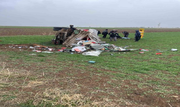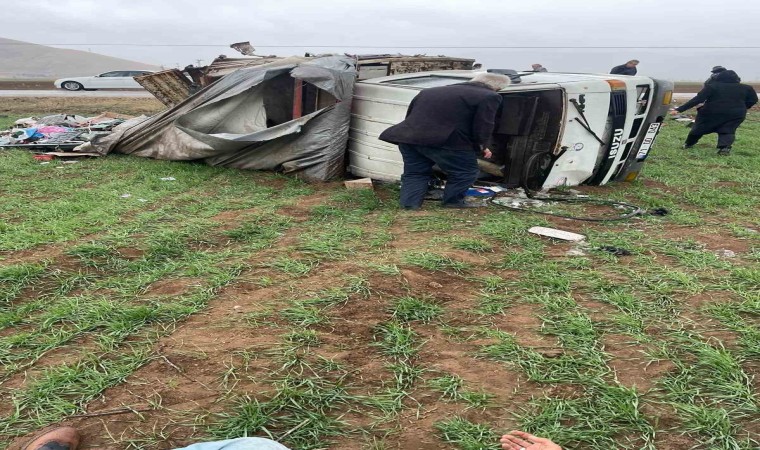 Afyonkarahisar’da kontrolden çıkarak tarım arazisine devrilen hurda elektronik ürün yüklü kamyonette 2 kişi yaralandı.