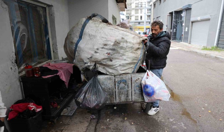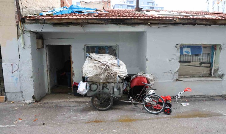 İzmir’in Karşıyaka ilçesinde tek katlı bir evde çocuklarıyla yaşayan çift, hurda ve plastik toplayarak geçimlerini sürdürüyor.