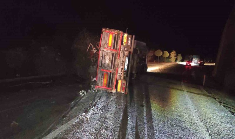 Adıyaman’ın Gölbaşı ilçesinde hurda yüklü Tırın yan yattığı kazada 1 kişi yaralandı.