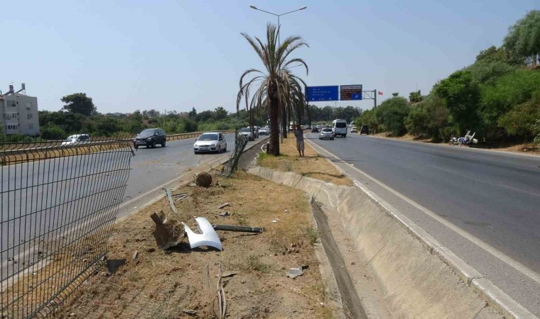Antalya’nın Manavgat ilçesinde refüjdeki tel örgüleri yerinden söküp karşı şeride geçen otomobil, karşı şeritte bir başka otomobile ve çelik bariyerlere çarparak durabildi. Karşı şeritte yol ortasında durabilen otomobilin sürücüsü ve otomobilde yolcu olarak bulunan arkadaşı hurdaya dönen otomobilden kendi imkanlarıyla burunları kanamadan çıktı.