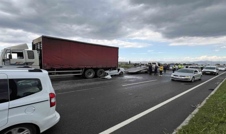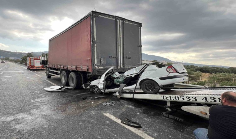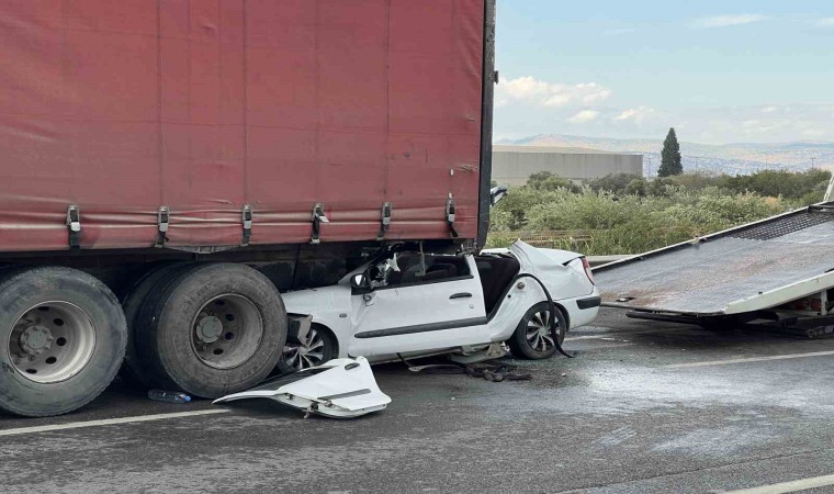 Kaza, Manisa’nın Yunusemre ilçesi İzmir - İstanbul çevreyolu üzerinde meydana geldi. Edinilen bilgiye göre A.V. idaresindeki 45 ALL 514 plakalı otomobil aynı istikamette seyir halindeki C.D. idaresindeki 35 BDD 416 plakalı kamyona arkadan çarptı. Çevredekilerin haber vermesi üzerine bölgeye 112 Acil Servis ekipleri ile polis ve Manisa Büyükşehir Belediyesine bağlı itfaiye ekipleri sevk edildi. İtfaiye ekipleri tarafından sıkıştığı yerden çıkarılan otomobil sürücüsü A.V. ambulansla hastaneye kaldırıldı.