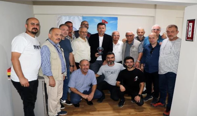 Konuşmanın ardından Türkiye Spor Yazarları Derneği (TSYD) Samsun Şube Başkanı Avni Demir ve Samsun 19 Mayıs Gazeteciler Cemiyeti Başkanı Yusuf Ziya Çakır, teknik direktör Hüseyin Eroğlu’na Samsun’a ve Samsunpor’a verdiği hizmetlerden dolayı TSYD’nin plaketini hediye etti. (DHA)