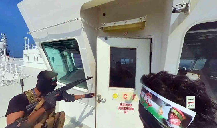 Husiler, dün Kızıldeniz’de 22 mürettebatı ile birlikte el koydukları kargo gemisine ait görüntüleri yayınladı.