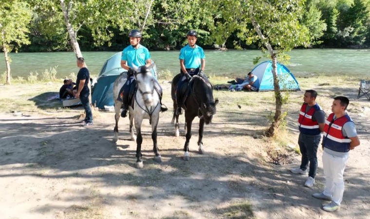 Tunceli Valisi Bülent Tekbıyıoğlu ve İl Jandarma Komutanı Tümgeneral Nuh Köroğlu, kent sakinleri ile turistlerin yoğun olarak kullandığı Munzur Vadisi’nde devriye görevi yürüten atlı jandarma timlerini ziyaret ederek bilgi aldı.